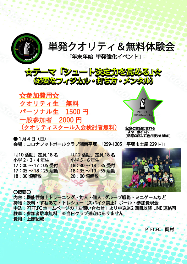 サッカー総合力を競うPTFTカップ・1対1を競う大会デュエルゲームスなど