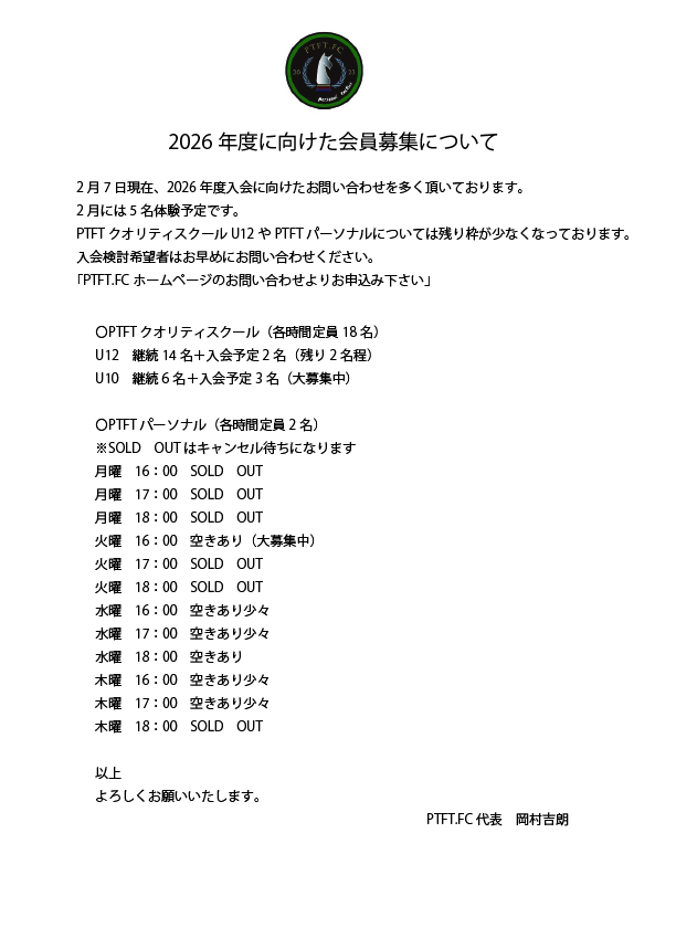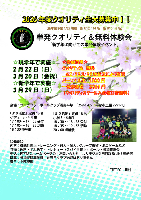 ↑クオリティ生大募集中です!特にU10はかなりの少人数制スタート予定で、大募集&おすすめ中です!