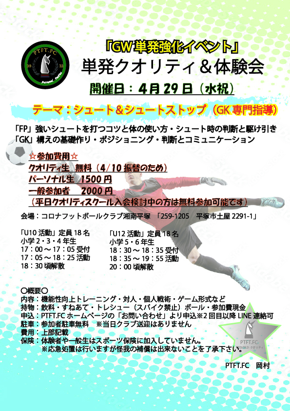 サッカー総合力を競うPTFTカップ・1対1を競う大会デュエルゲームスなど